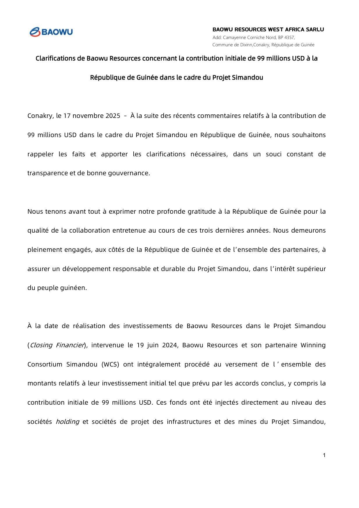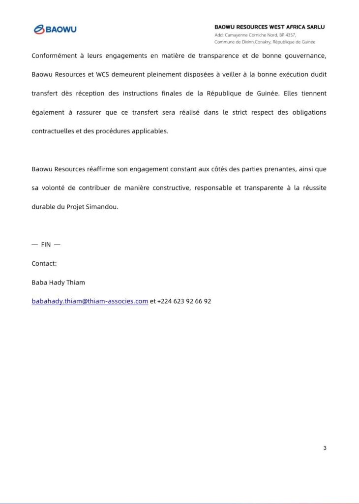 Actualités 𝐂𝐋𝐀𝐑𝐈𝐅𝐈𝐂𝐀𝐓𝐈𝐎𝐍𝐒 𝐃𝐄 𝐋’𝐄𝐍𝐓𝐑𝐄𝐏𝐑𝐈𝐒𝐄 𝐁𝐀𝐎𝐖𝐔 𝐑𝐄𝐒𝐒𝐎𝐔𝐑𝐂𝐄𝐒 𝐒𝐈𝐌𝐀𝐍𝐃𝐎𝐔 19 novembre 202519 novembre 2025 Balla Yombouno ▫️𝗟𝗮 𝗥𝗲́𝗽𝘂𝗯𝗹𝗶𝗾𝘂𝗲 𝗱𝗲 𝗚𝘂𝗶𝗻𝗲́𝗲, 𝗿𝗲𝗽𝗿𝗲́𝘀𝗲𝗻𝘁𝗲́𝗲 𝗽𝗮𝗿 𝗹𝗲 𝗖𝗼𝗺𝗶𝘁𝗲́ 𝗦𝘁𝗿𝗮𝘁𝗲́𝗴𝗶𝗾𝘂𝗲 𝗱𝗲 𝗦𝗶𝗺𝗮𝗻𝗱𝗼𝘂, 𝗻’𝗮 𝗽𝗮𝘀 𝗲𝗻𝗰𝗼𝗿𝗲 𝗮𝗰𝗰𝗲𝗽𝘁𝗲́ 𝗱’𝗲𝗻𝗰𝗮𝗶𝘀𝘀𝗲𝗿 𝗹𝗲𝘀 𝟵𝟵 𝗺𝗶𝗹𝗹𝗶𝗼𝗻𝘀 𝗨𝗦𝗗 𝘁𝗮𝗻𝘁 𝗾𝘂𝗲 𝗹’𝗲𝗻𝘀𝗲𝗺𝗯𝗹𝗲 𝗱𝗲𝘀 𝗽𝗿𝗲́𝗮𝗹𝗮𝗯𝗹𝗲𝘀 𝗰𝗼𝗻𝘁𝗿𝗮𝗰𝘁𝘂𝗲𝗹𝘀 𝗻𝗲́𝗰𝗲𝘀𝘀𝗮𝗶𝗿𝗲𝘀 𝗮̀ 𝗹𝗮 𝗺𝗶𝘀𝗲 𝗲𝗻 œ𝘂𝘃𝗿𝗲 𝗱𝘂 𝗣𝗿𝗼𝗷𝗲𝘁 𝗦𝗶𝗺𝗮𝗻𝗱𝗼𝘂 𝗻’𝗮 𝗽𝗮𝘀 𝗲́𝘁𝗲́ 𝗽𝗹𝗲𝗶𝗻𝗲𝗺𝗲𝗻𝘁 𝗿𝗲𝗺𝗽𝗹𝗶.