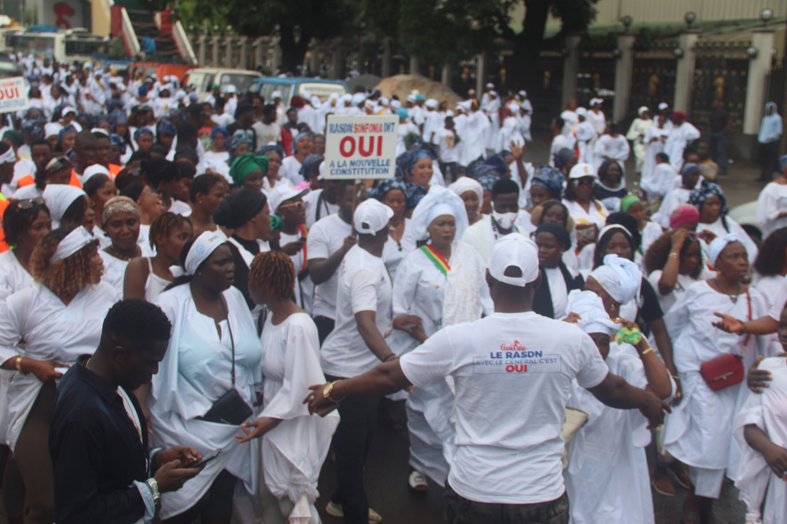 Les militants, venus en grand nombre, portaient des t-shirts sur lesquels on pouvait lire : « Votons tous la nouvelle Constitution » ou encore « RASDN avec le général Mamadi Doumbouya, c’est Oui ».