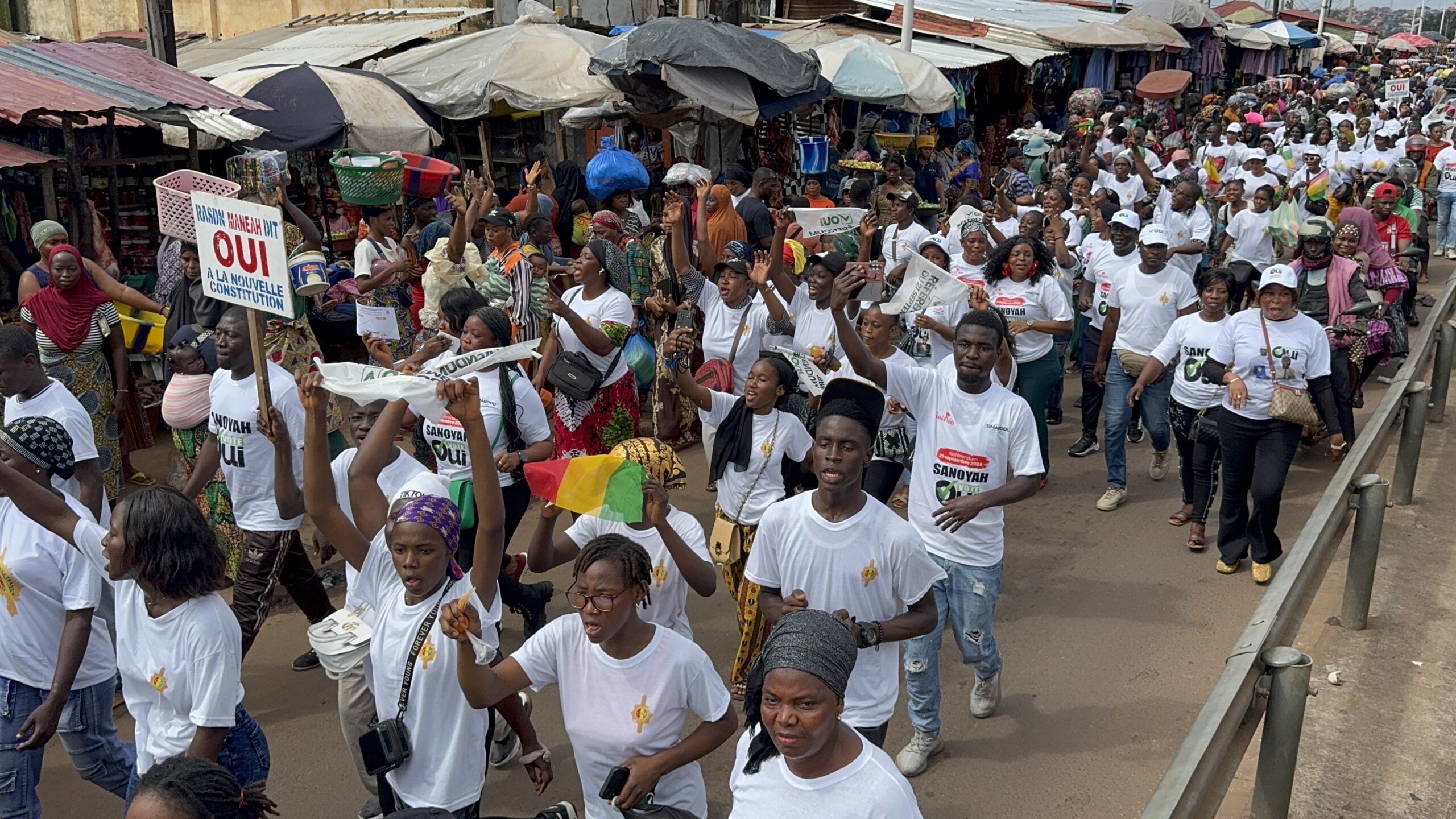 Tout au long du parcours, les jeunes participants scandaient : « Oui à la nouvelle Constitution ! Vive le Général Mamadi Doumbouya ! Vive le CNRD ! Vive la nouvelle Constitution ! »