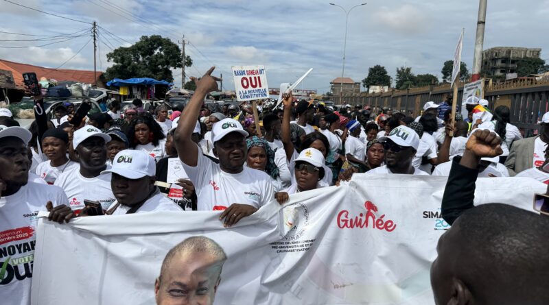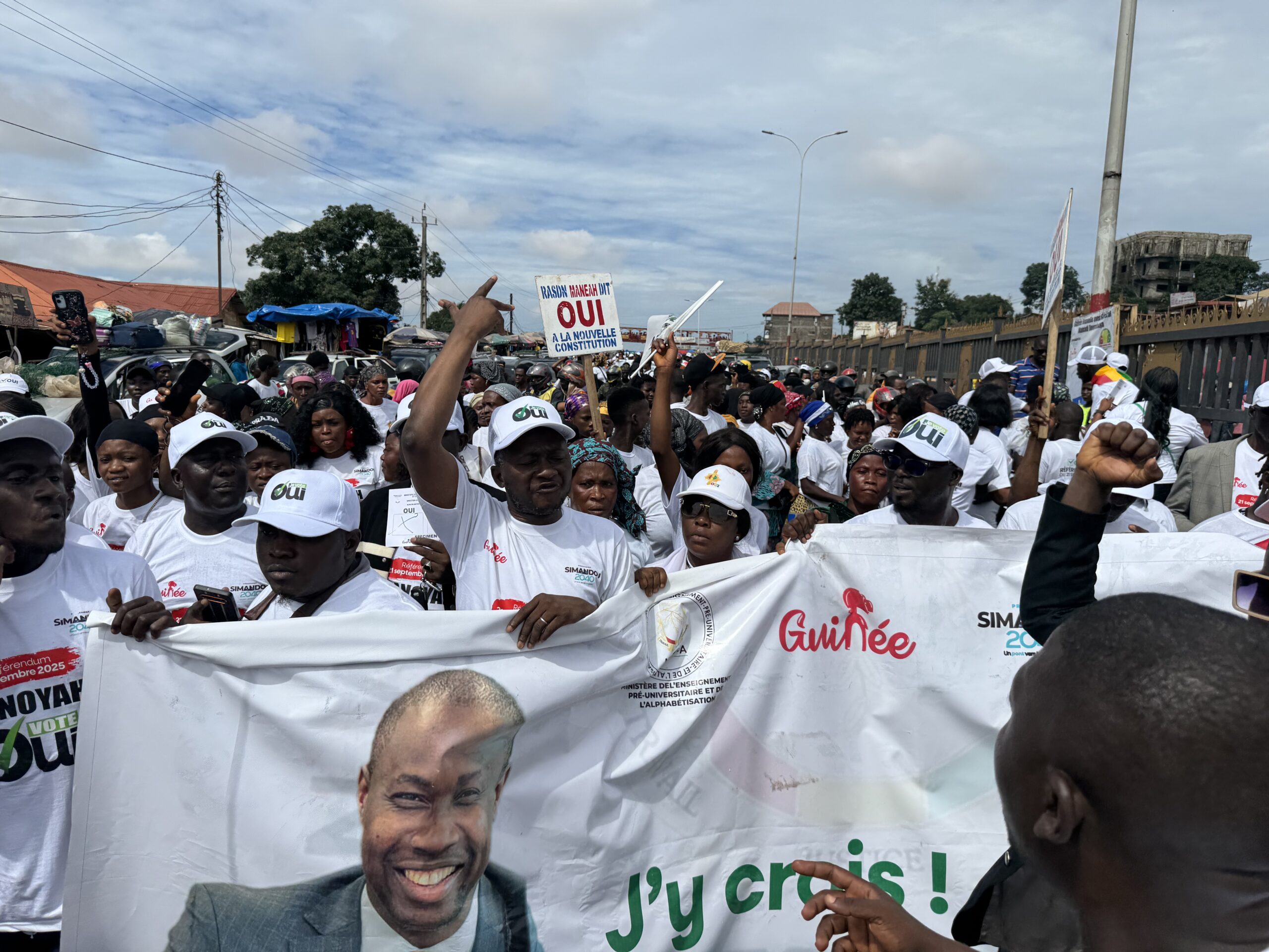 Sous l’initiative du collectif des dix chefs de quartier de la commune urbaine de Sanoyah, Monsieur Mohamed Kourouma, Directeur Administratif et Financier (DAF) au ministère de l’Enseignement pré-universitaire et de l’Alphabétisation, a mobilisé une foule à l’occasion de la clôture de la campagne référendaire, à travers une marche en faveur du « OUI ».