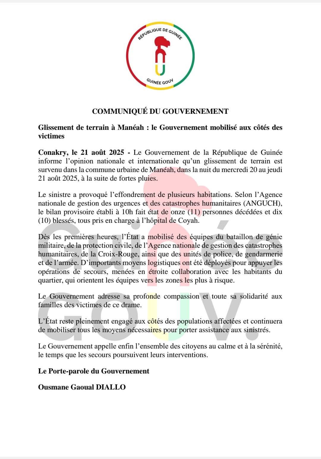 Suite à ce drame, le gouvernement guinéen a fait un communiqué parlant aussi de 11 morts