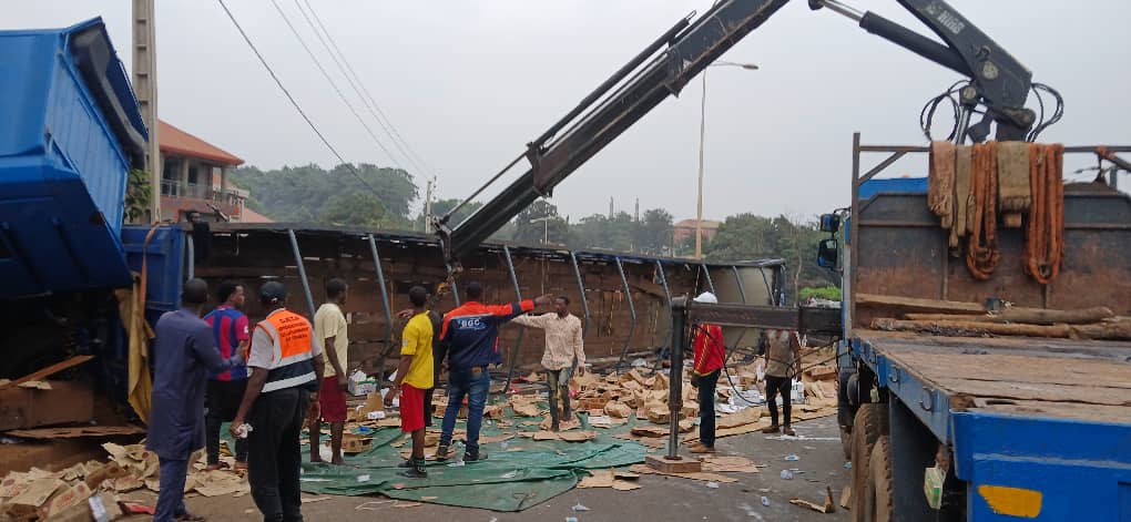 Selon les témoins rencontrés sur les lieux, le camion en question, revenant de la Sierra Leone avec une cargaison de marchandises, a terminé sa course dans le ravin après que le chauffeur, somnolant, ait perdu le contrôle de son engin.