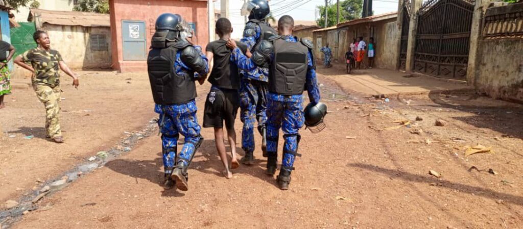 Suite à de longues tensions entre les deux parties (les forces de l’ordre et les jeunes manifestants), les forces de l’ordre ont arrêté sept (7) jeunes manifestants, dont des mineurs, et les ont conduits à la brigade de recherche de Kipé.