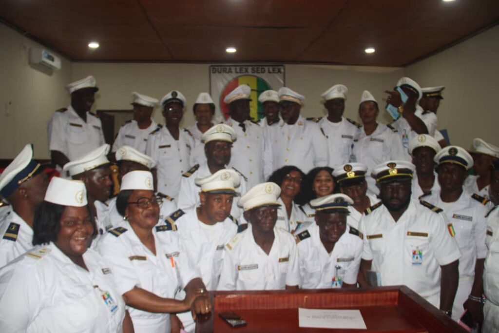Ces cadres devant vous vont porter la casquette d’officier de police judiciaire ; par conséquent, ils auront la lourde responsabilité de rechercher les infractions, d’identifier les auteurs, de constater ces infractions relatives à la sécurité maritime sur procès-verbal et de déférer les auteurs devant la juridiction. À cet égard, et en raison de cette mission, en leur qualité d’officiers de police judiciaire, ils agiront comme le font les policiers et les gendarmes dans l’exercice de leurs fonctions, concernant les infractions relevant du droit commun », a rappelé Mohamed Bangoura.