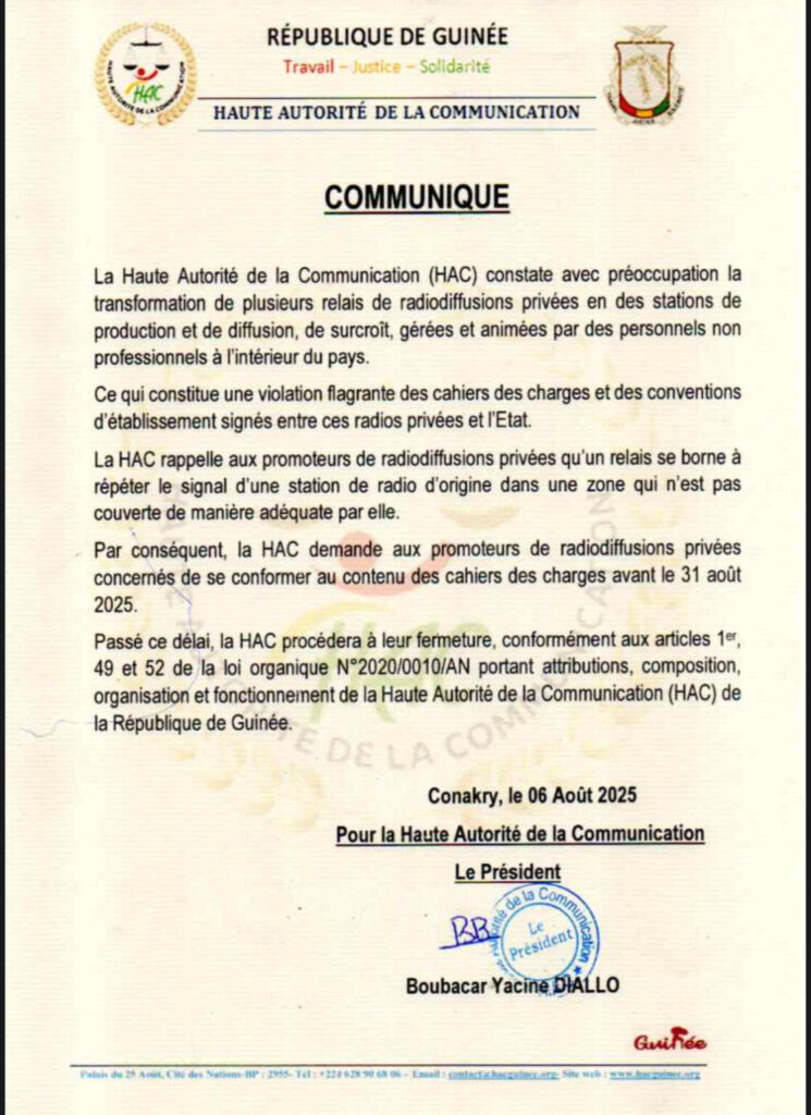Médias : la HAC menace de fermer les relais de radios privées transgressant leur cahier des charges( communiqué)