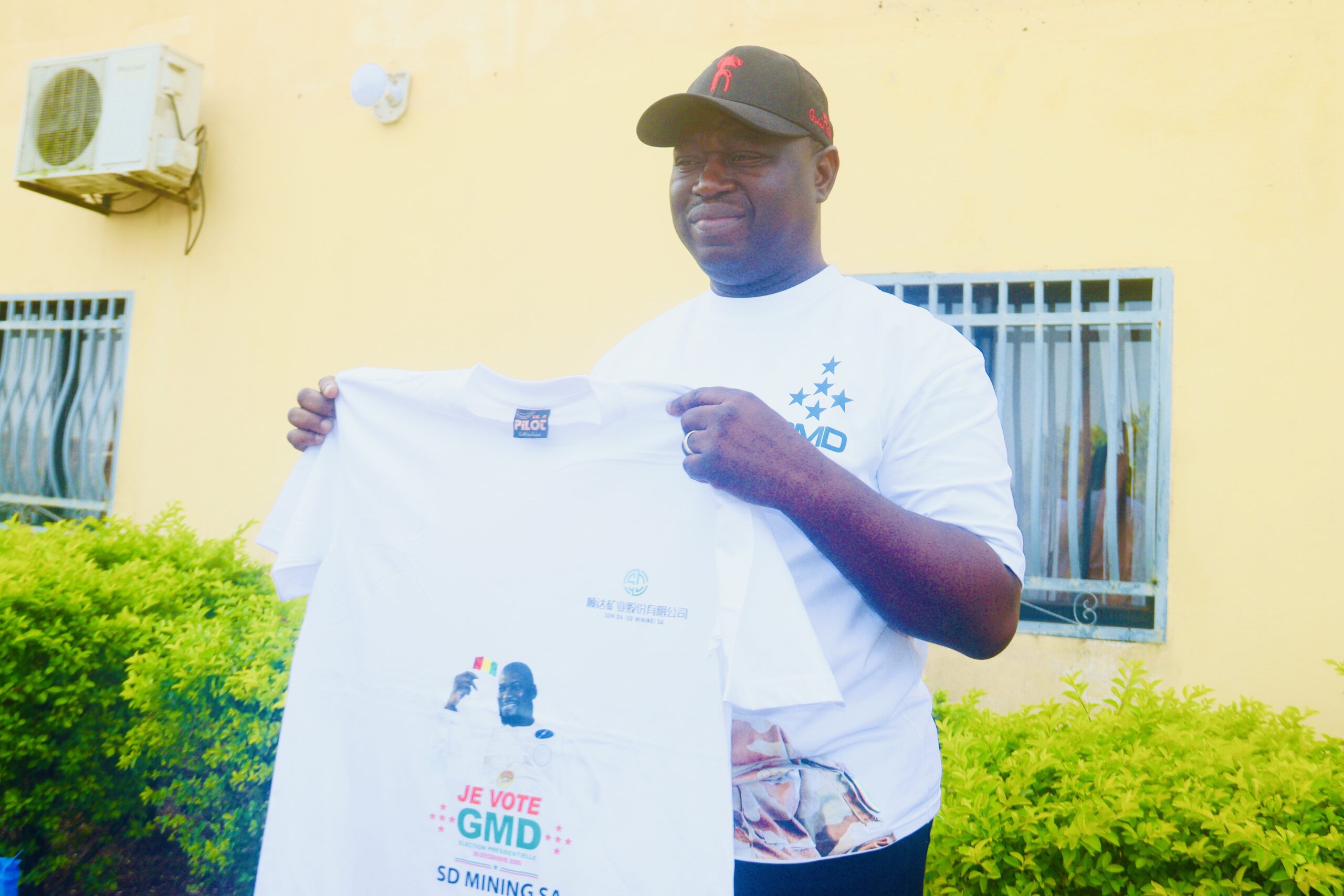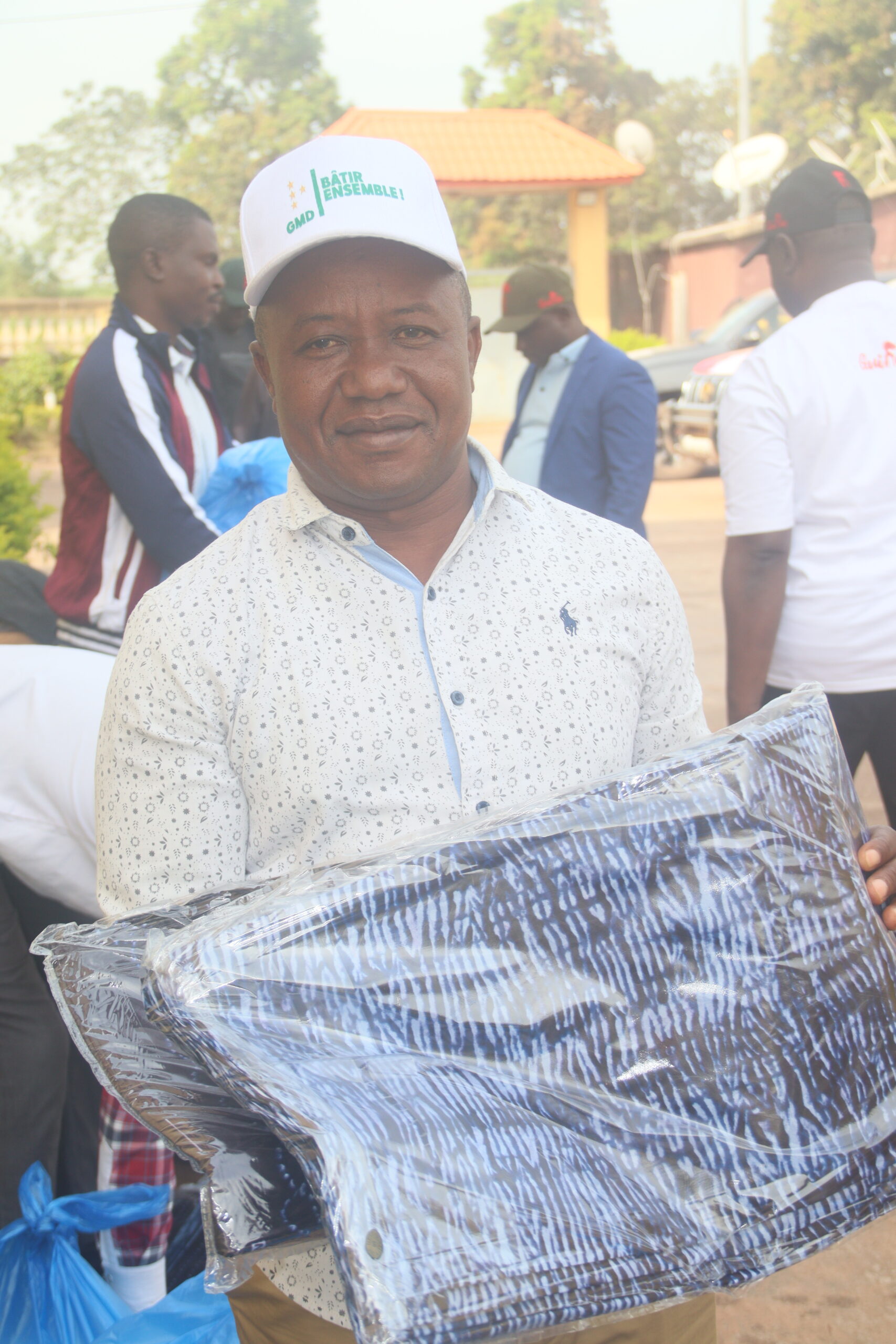 Il s’agit de ballons de T-shirts à l’effigie du président, sur lesquels on peut lire « Je vote GMD », ainsi que de tissus leppi. L’objectif est de permettre aux bénéficiaires d’être uniformes tout au long de la campagne présidentielle.