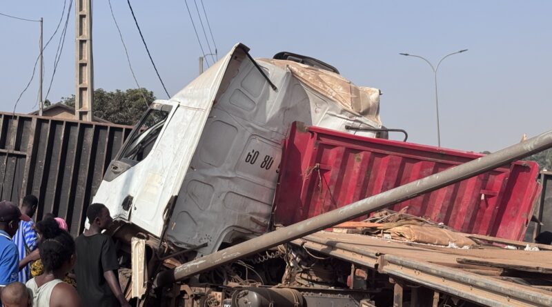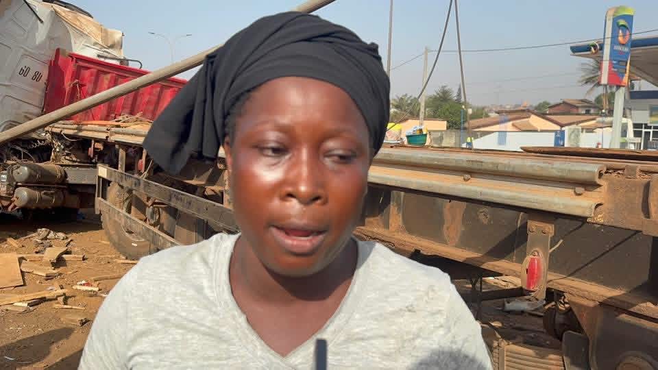 Selon les informations reçues sur les lieux du drame, un camion-remorque transportant un conteneur de 40 pieds en direction de Conakry a perdu le contrôle. Il a percuté un minibus transportant des passagers avant de finir sa course dans une concession et des boutiques. Parmi les victimes, le chauffeur, non encore identifié, a succombé sur place. La deuxième victime est une femme du nom de Makalé, résidant dans le quartier, qui a été percutée par le camion lorsqu’elle tentait de traverser pour monter dans le minibus immatriculé BC 0243.