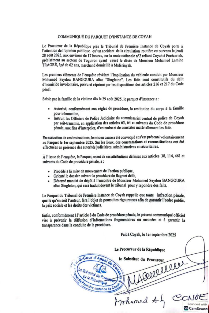 Son procès s’ouvrira le mercredi 3 septembre prochain au tribunal de première instance de Coyah.